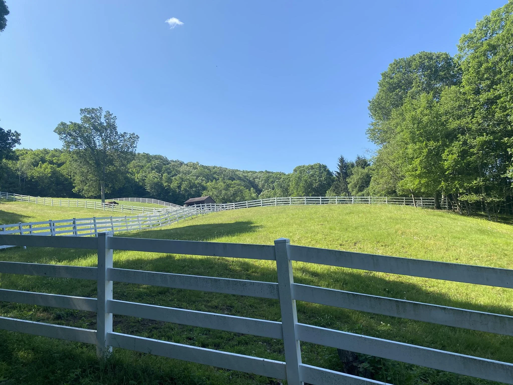 The second barn is situated further up the hill, offering easier access to the outer turnout areas. This thoughtful layout helps streamline daily routines for both horses and humans, making transitions smoother and increasing efficiency at the barn.